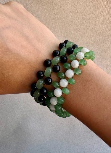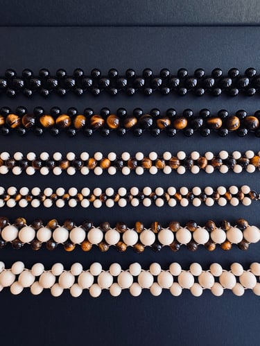 Eco-friendly jewelry, bag charms, and phone wristlets made in limited quantities from semi-precious stones and reclaimed glass beads